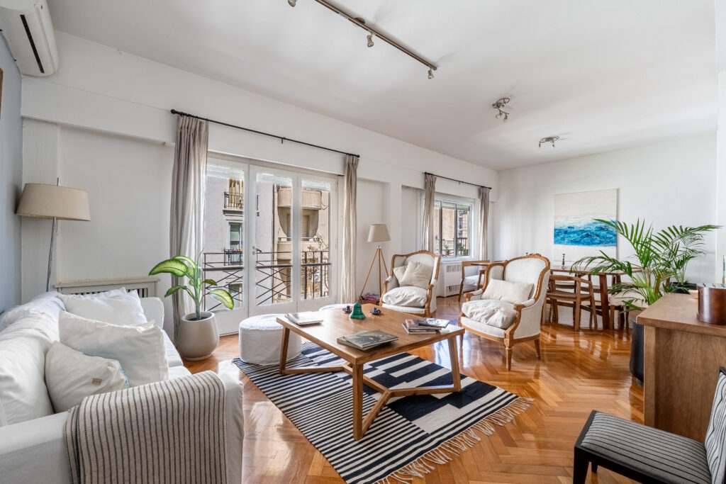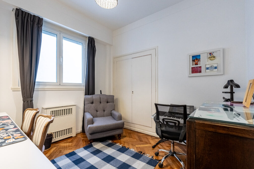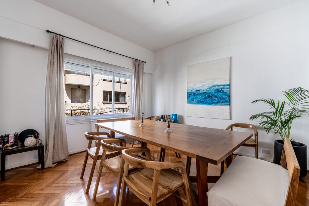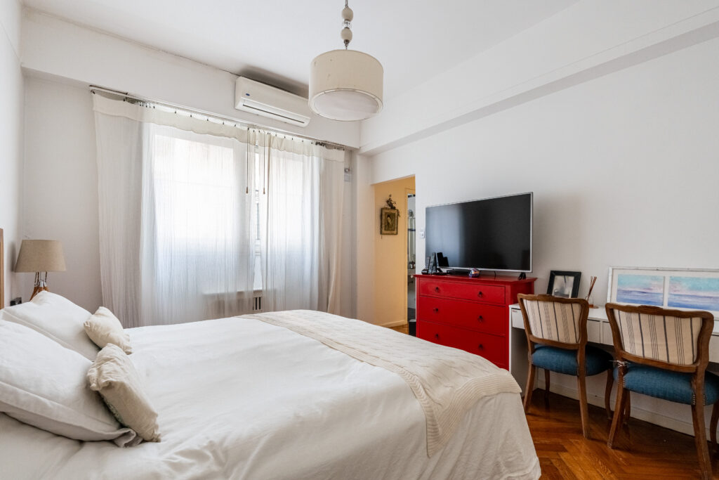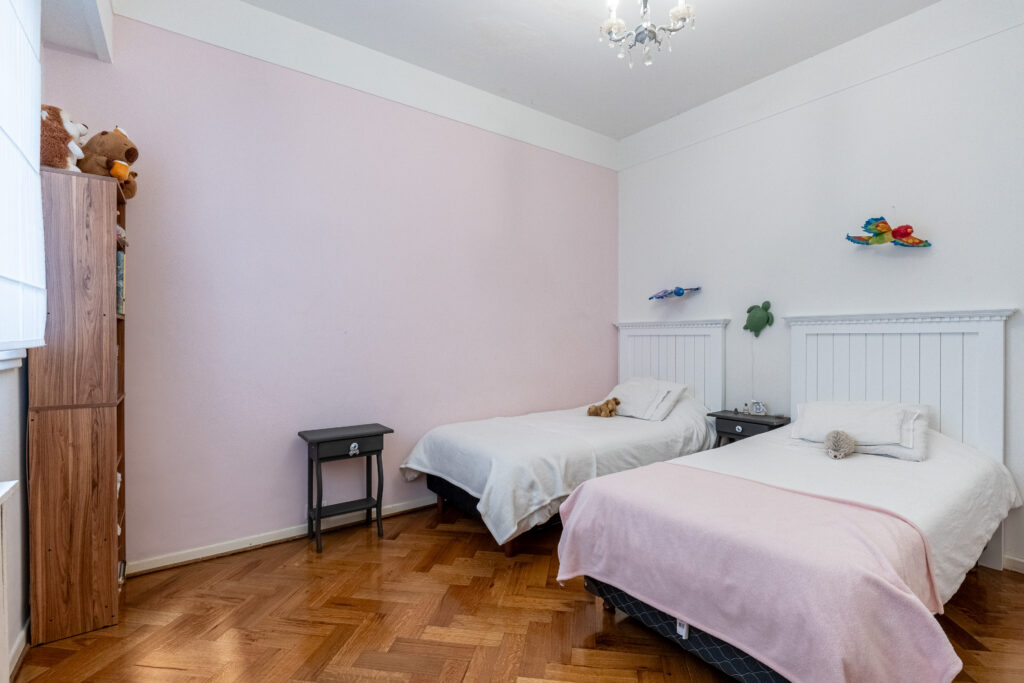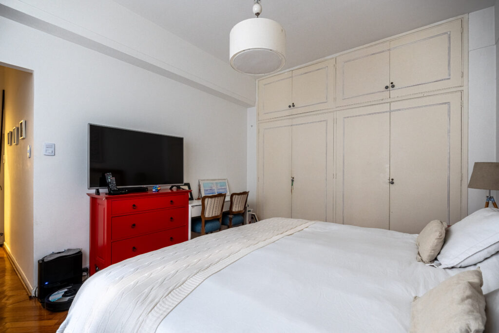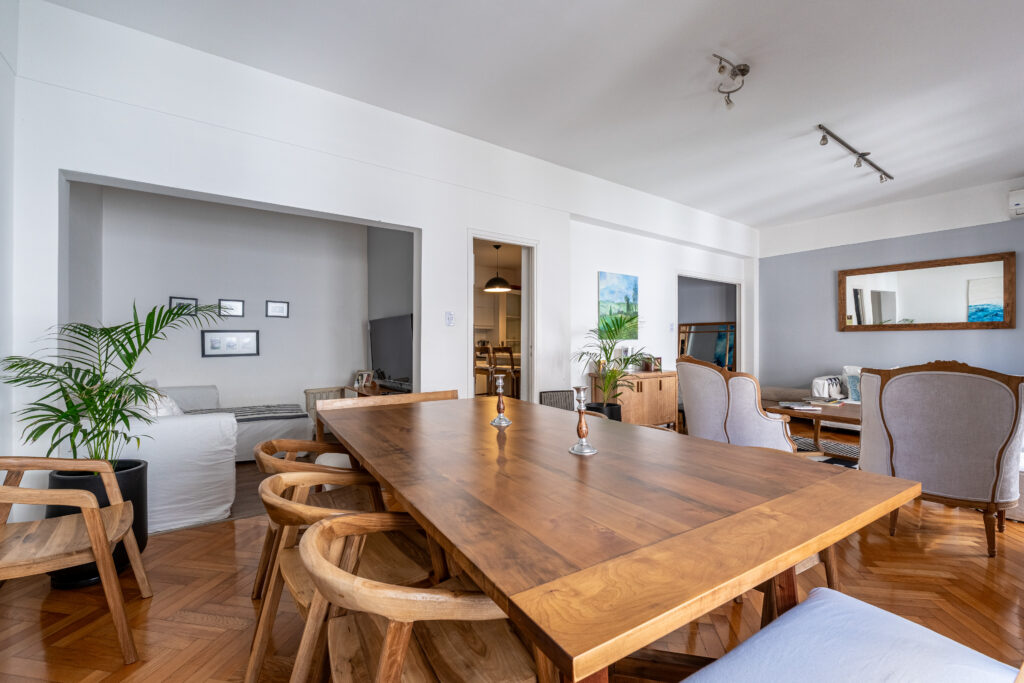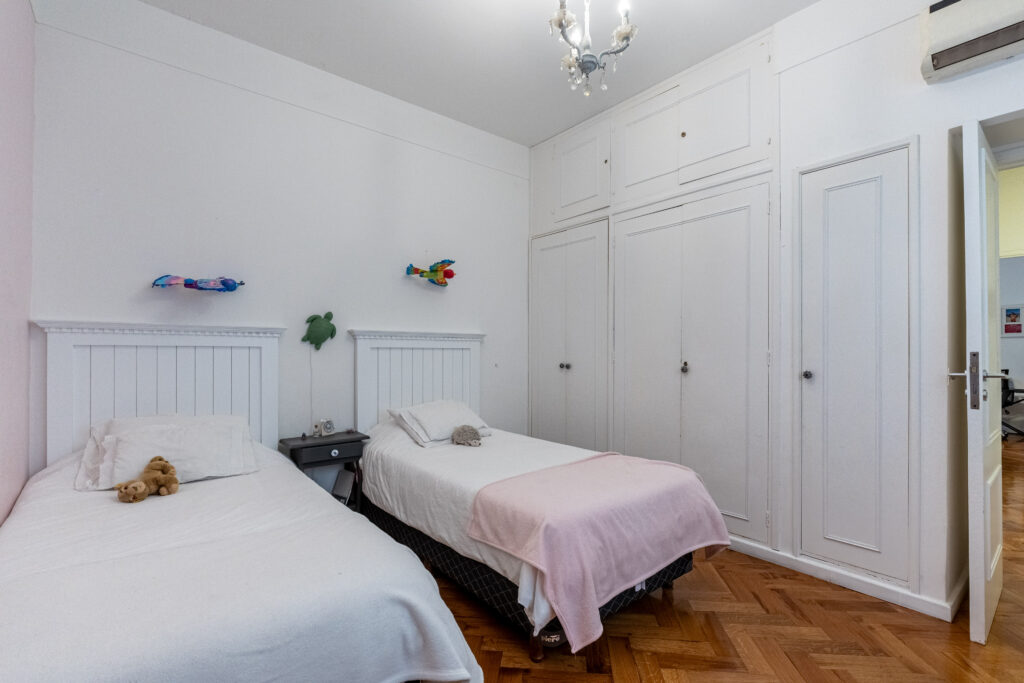 Muy lindo departamento Impecable, Refaccionado hace pocos años con muy lindos detalle. Consta de – Hall (2.3×0.9) – Living Comedor (8.2×4.2) – Play (2.5×2.3) – 3 Dormitorios, principal en suite (4.1×3.5 – 3.8×3.1 – 3.2×3) – Escritorio / Play (2.3×2.5) – 1 baño con ducha – 1 toilette – Cocina muy cómoda con barra (3.6×3.1) – Lavadero separado – Baño de servicio Todas las aberturas son nuevas de PVC doble vidrio Calefacción central por radiadores Agua caliente central Baulera Cuenta con un cuartito ubicado en el ultimo piso con ventana y conexión a internet que se usa como escritorio Encargado con vivienda Llave electrónica y cámaras Segun escritura 128.58 m2 + 1 m2 de balcon + 3.52 m2 de cuartito/escritorio ubicado en la azotea