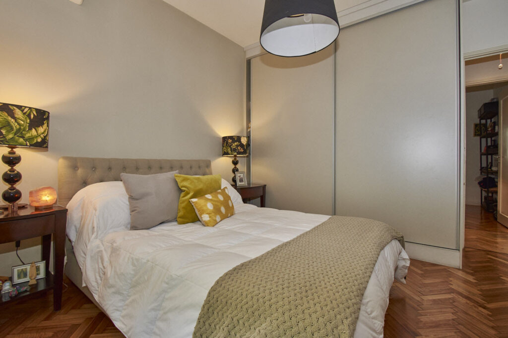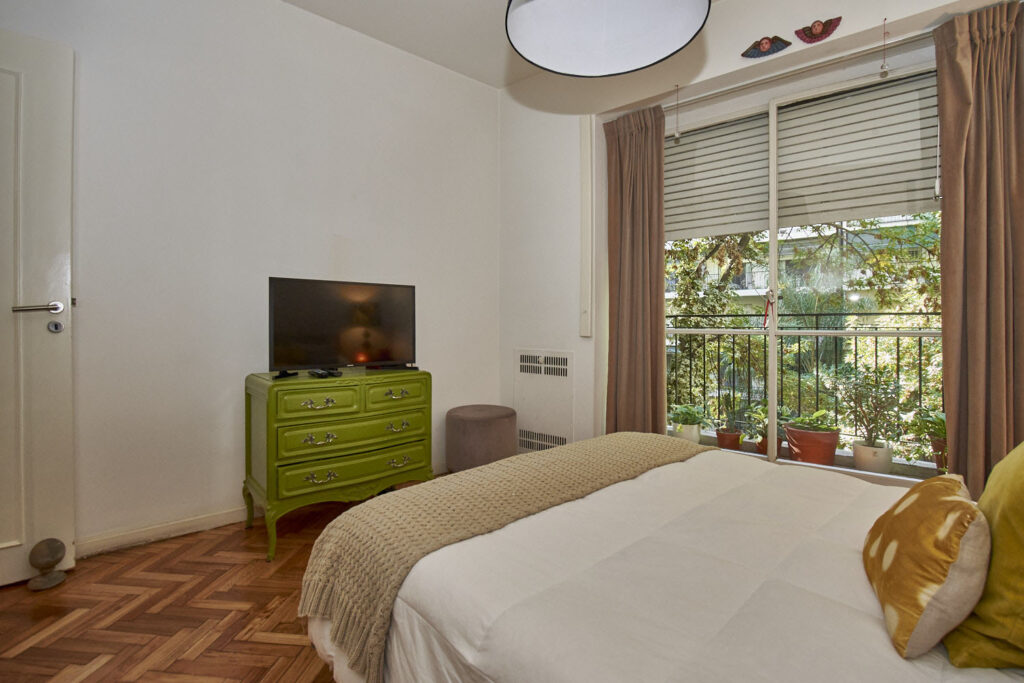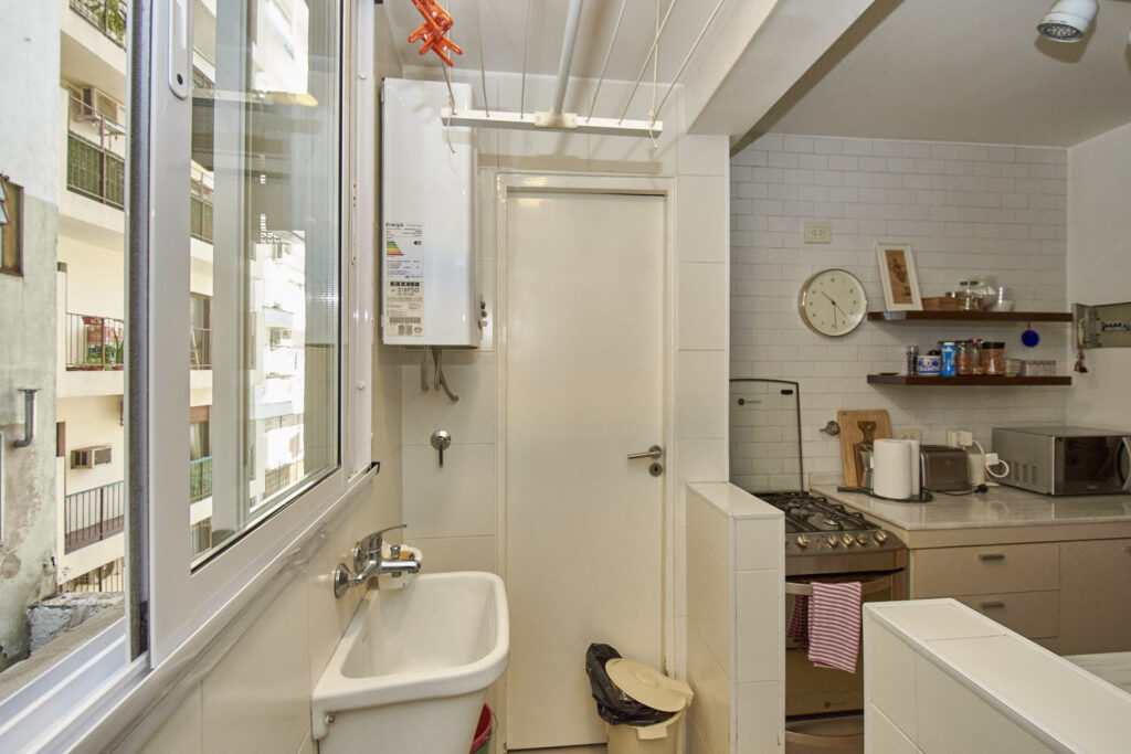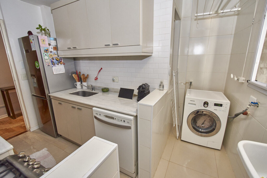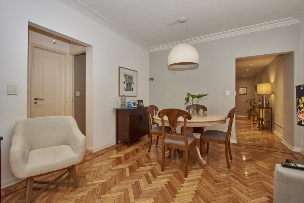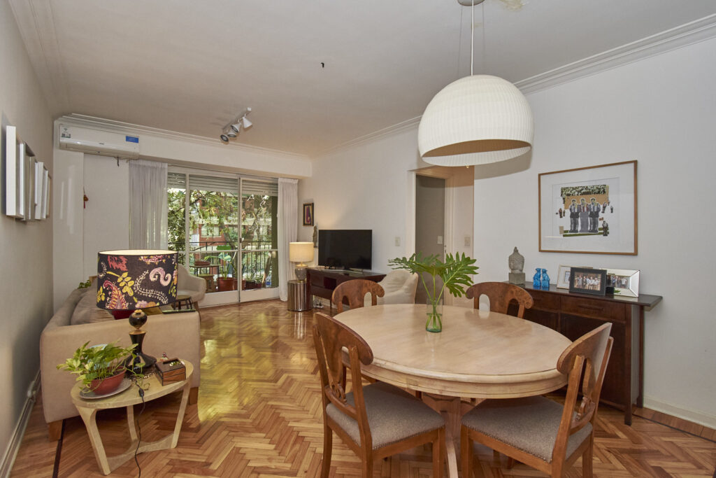 Muy Lindo Departamento Impecable y Refaccionado – 4 Ambientes Muy lindo departamento reciclado. Hall de entrada. Living comedor con salida a balcon corrido sobre Av. Coronel Diaz. El cuarto principal, tambien tiene salida al balcon y el segundo dormitorio dá al pulmon. Actualmente, el dormitorio que podria ser de servicio es utilizado como escritorio. Tiene un baño completo y un baño de servicio, ambos reciclados. La cocina cuenta con mesada en ambos costados, y da al lavadero de muy buen tamaño. La calefaccion es individual por Aire y el agua caliente es indivudual por calefon. El departamento cuenta con 3 splis frio/calor. Segun escritura son 74.82 metros cubiertos, 2.95 metros semicubiertos y 6.83 metros de balcon.