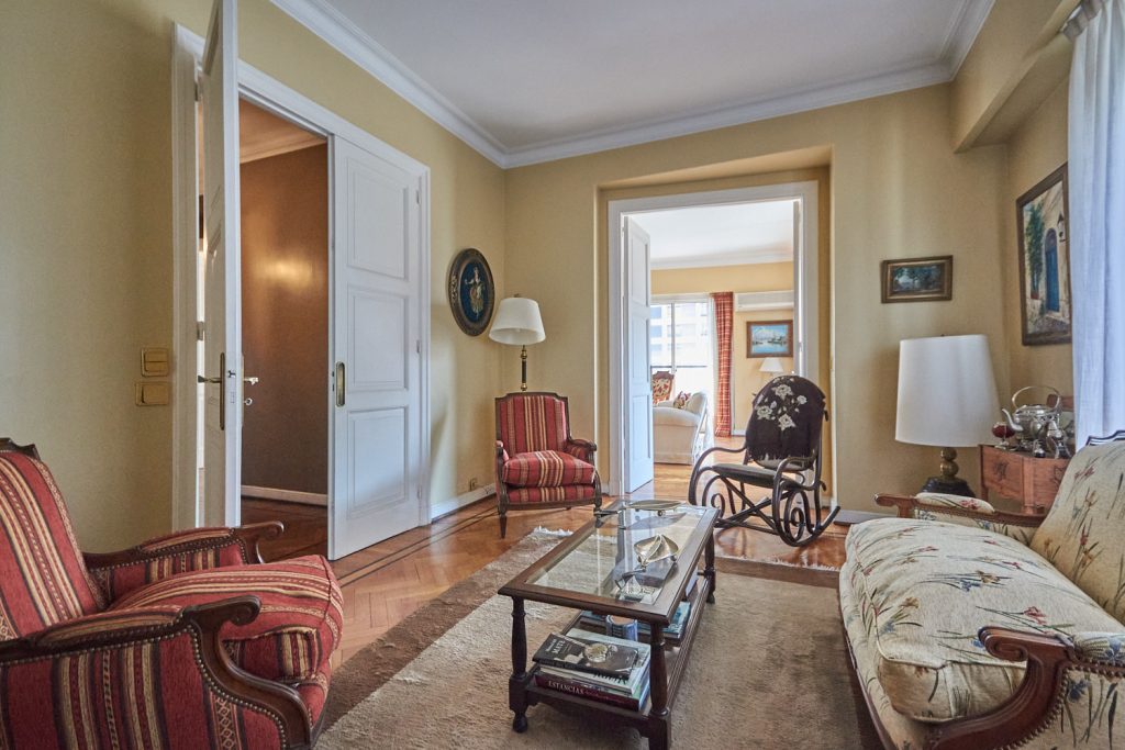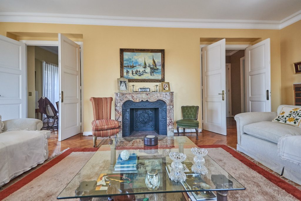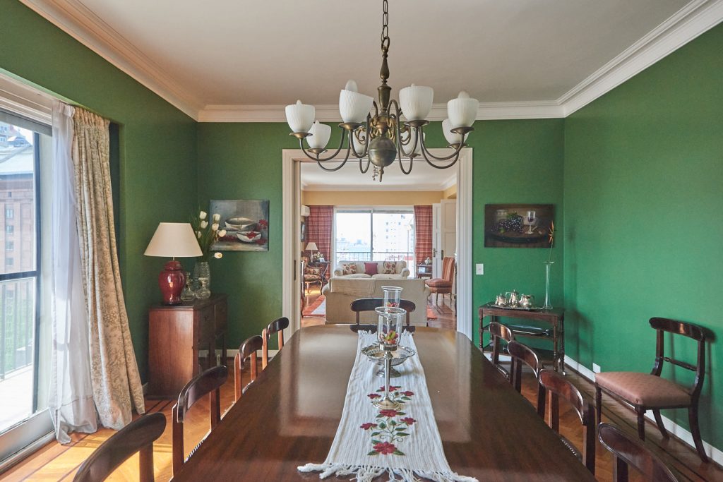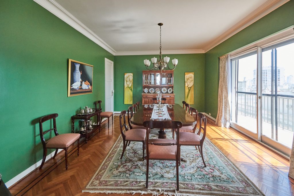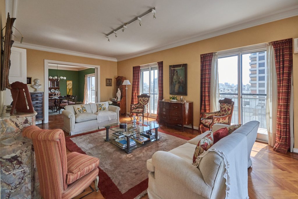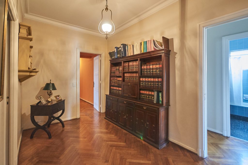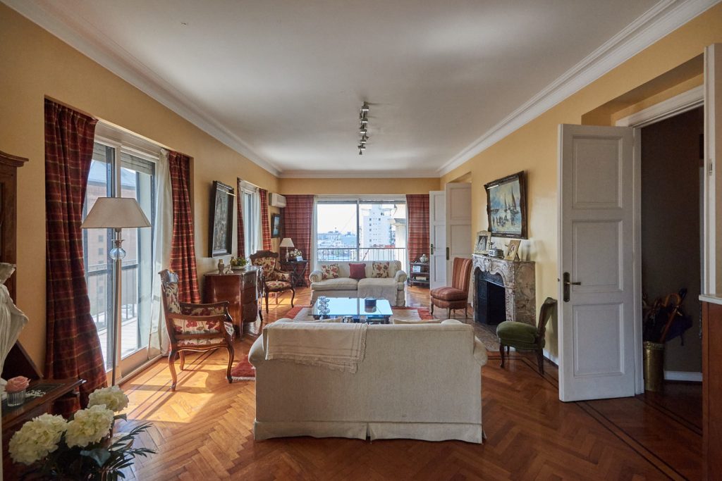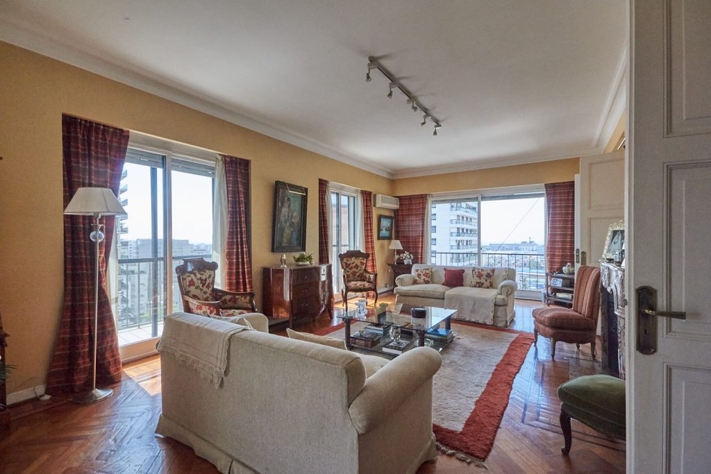 Edificio en torre de excelente categoría, construcción Lanusse con entrada por Alvear y por Libertad. Tiene balcón al frente y al contrafrente, este con vista a los jardines del Jockey club. Piso alto con excelente vista y luminosidad en todos los ambientes. Consta de hall de entrada, living y comedor, escritorio ,toilette de recepción ,dos dormitorios en semisuite, una suite, y una master suite doble. Tres baños completos con ventilación al exterior. Amplia cocina, gran Family room, lavadero y dependencia de servicio con su baño-Dos cocheras fijas en planta baja, baulera individual. Vigilancia 24 hs y servicios centrales.